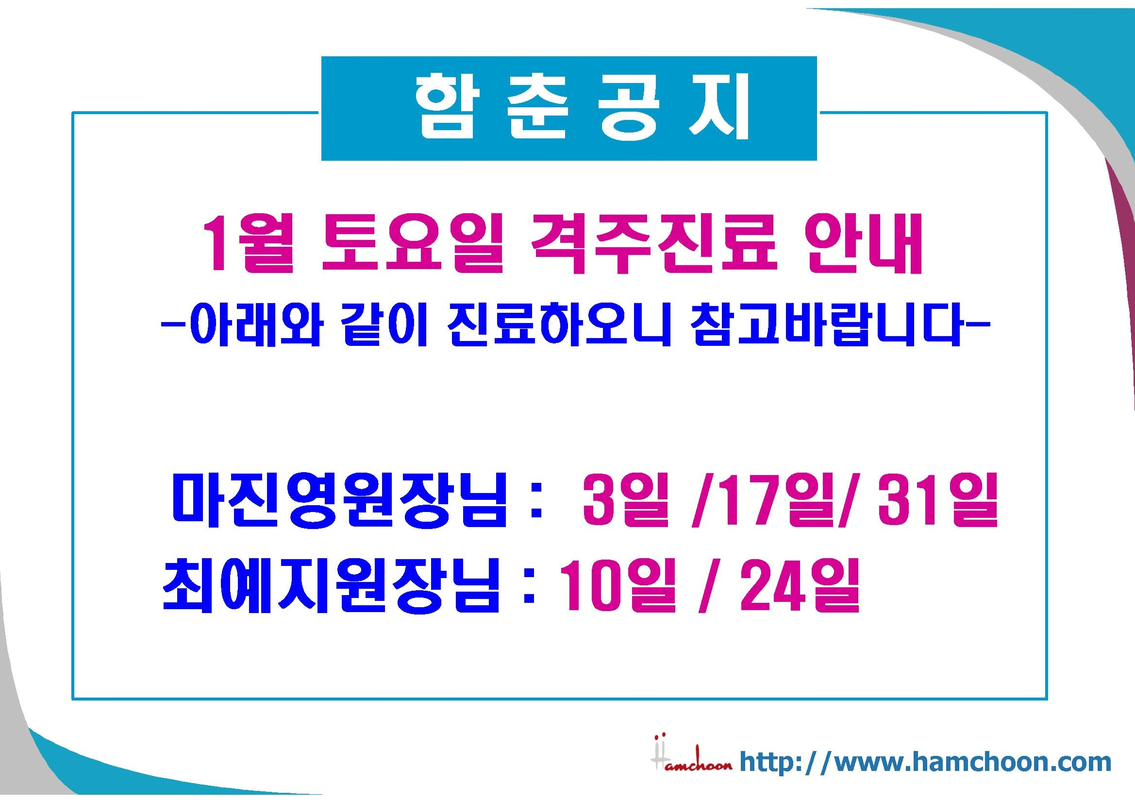 1월 토요일 진료안내(마진영원장님/최예지원장님 격주진료)